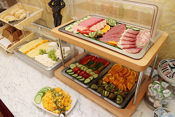 Sie können sich von unsrerm reichlichen Frühstücksbuffet nach Herzenslust bedienen. Heiße Getränke werden von unserem freundlichen Personal zu Tisch gebracht.